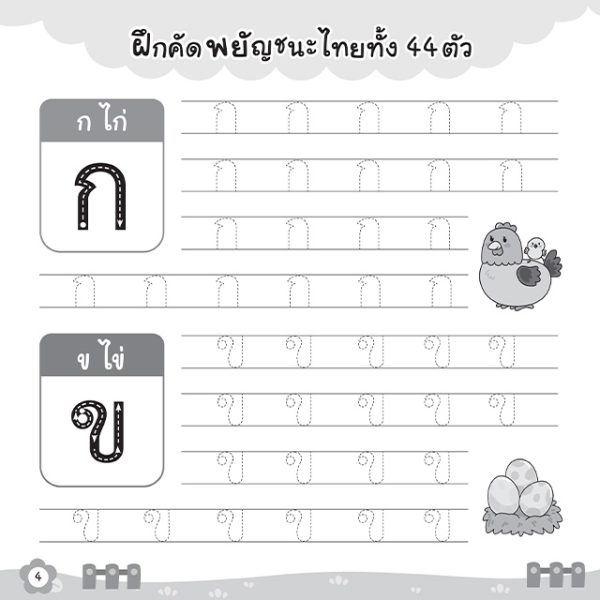 หนังสือ ฝึก อ่าน เขียน เรียน ภาษาไทย กขค และ สระ คำศัพท์น่ารู้สำหรับหนูน้อย เป็นหนังสือที่จะช่วยให้หนูน้อยฝึกอ่าน ฝึกเขียน พยัญชนะและสระในภาษาไทย สนุกไปกับการคัดคำศัพท์ตามเส้นประ พร้อมเรียนรู้การสะกดคำอย่างถูกต้อง และมีคำศัพท์น่ารู้แบ่งเป็นหมวดหมู่ พร้อมภาพประกอบน่ารัก