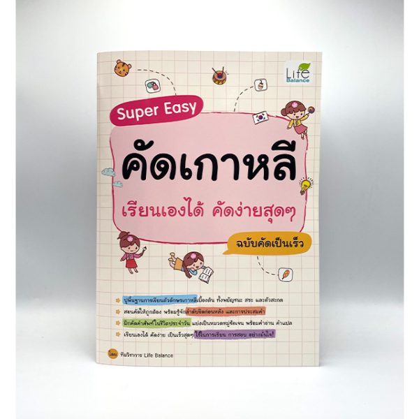 หนังสือ Super Easy คัดเกาหลี เรียนเองได้ คัดง่ายสุดๆ ฉบับคัดเป็นเร็ว เป็นหนังสือปูพื้นฐานการเขียนตัวอักษรเกาหลีเบื้องต้น สอนคัดตั้งแต่พยัญชนะไปจนถึงสระ อีกทั้งยังสอนวิธีการคัดให้ถูกต้องและอ่านง่ายด้วยลำดับขีดก่อนหลัง ฝึกคัดคำศัพท์ในชีวิตประจำวัน แบ่งเป็นหมวดหมู่ชัดเจน พร้อมคำอ่าน คำแปล เรียนเองได้ คัดง่าย เป็นเร็วสุดๆ ใช้ในการเรียน การสอบ อย่างมั่นใจ!