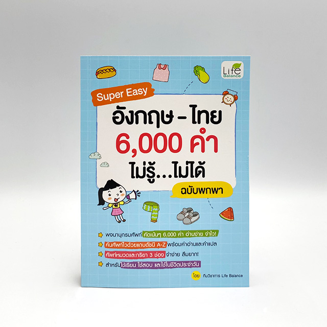 หนังสือ Super Easy อังกฤษ-ไทย 6,000 คำ ไม่รู้...ไม่ได้ ฉบับพกพา เป็นพจนานุกรมที่คัดศัพท์เน้นๆ 6,000 คำ อ่านง่าย จำไว ค้นศัพท์ไวด้วยแถบดัชนี A-Z พร้อมคำอ่านและคำแปล มีศัพท์หมวดและกริยา 3 ช่อง จำง่าย ลืมยาก! สำหรับใช้เรียน ใช้สอบ และใช้ในชีวิตประจำวัน